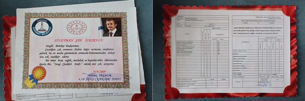 ÖĞRENCİLERDEN BAŞKAN TAHMAZOĞLU’NA SÜRPRİZ KARNE VE TEŞEKKÜR BELGESİ
