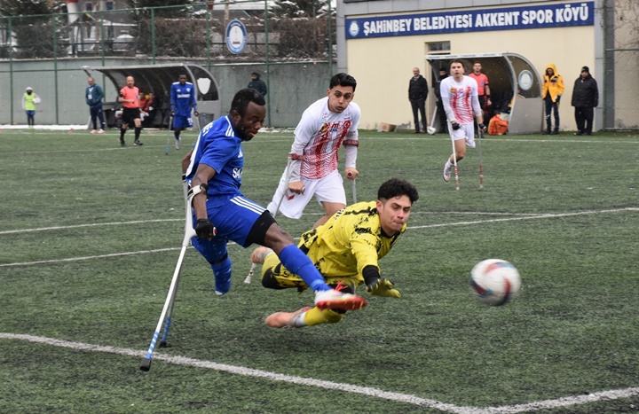 Gaziantep Şahinbey Belediye Spor Kulübü Ampute Futbol Takımı, kendi evinde TSK Rehabilitasyon Merkezi Engelli Spor Kulübü Ampute Futbol Takımı’nı 7-0 gibi net bir skorla mağlup ederek şampiyonluk yolunda çok önemli bir engeli daha aştı.