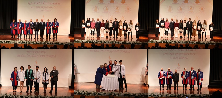 Gaziantep’te SANKO Üniversitesi 2025-2026 Akademik Yılı Açılış ve Beyaz Önlük Giyme Töreni, Abdulkadir Konukoğlu Kültür ve Spor Merkezi’nde gerçekleştirildi. Törende atama ve yükseltmeleri tamamlanan 30 akademisyene cüppe, Tıp Fakültesi birinci sınıfta öğrenim gören 54 öğrenciye de beyaz önlük giydirildi.