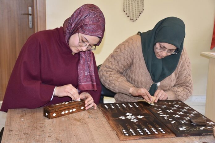 Genelde erkeklerin yaptığı sedef kakma sanatına katılan kadınların ürettiği ürünler göz kamaştırıyor. Kursiyerlerin elinden çıkan eşyalar, çeşitli hediyelik eşya galerilerinde satışa sunuluyor. Usta öğreticiler tarafından verilen eğitimlerde midye ve istiridye kabuklarından elde edilen sert ve beyaz madde, ceviz ağacından yapılan ürünlere işlenerek sedef kakma sanatı ortaya konuyor.