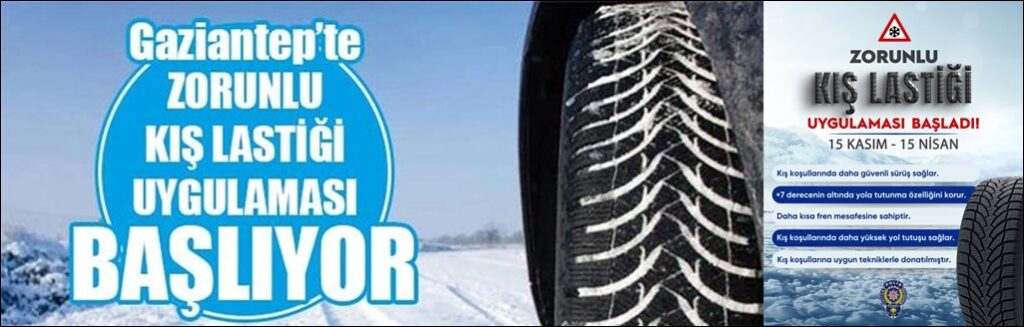 Ulaştırma ve Altyapı Bakanı Abdulkadir Uraloğlu, zorunlu kış lastiği uygulamasının bugün başlayıp 15 Nisan’da sonlanacağını anımsattı. Bakan Uraloğlu, “Uygulama şehirlerarası yollarda yolcu ve eşya taşıyan tüm ticari araçlar için zorunlu olacak” dedi.