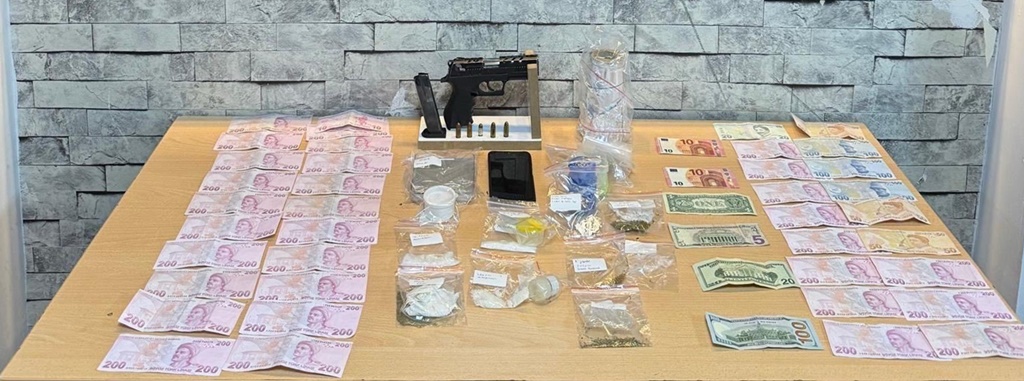 Operasyonda ruhsatsız tabanca, 5 fişek, bir miktar uyuşturucu madde, hassas terazi, uyuşturucu satışından elde edildiği değerlendirilen 6 bin 690 TL, 126 Dolar ve 20 Euro ele geçirildi.