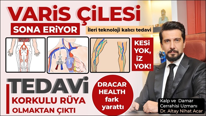 Damar hastalıklarının en çilelisi olarak bilinen varis ve lipödem tedavileri Gaziantep’te Kalp ve Damar Cerrahisi Uzmanı Dr. Altay Nihat Acar tarafından kurulan DRACAR HEALTH ile korkulu rüya olmaktan çıktı. Aylarca hatta yıllarca varis çoraplarına mahkûm kalan, ağrılı ameliyatlar nedeniyle tedavi olmaktan çekinen hastalar artık yeni yöntem sayesinde ağrısız, kesisiz bir şekilde hastalıklarından kurtulabiliyor. Yeni yöntemle hastalar günlerce yatağa bağlı kalmaktan kurtulup ertesi gün normal hayatına devam edebiliyor.