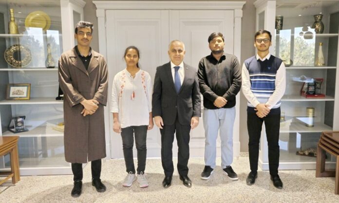 Gaziantep Üniversitesi (GAÜN) Rektörü Prof. Dr. Sait Mesut Doğan, üniversitede eğitim gören Hindistanlı öğrencileri makamında kabul etti.