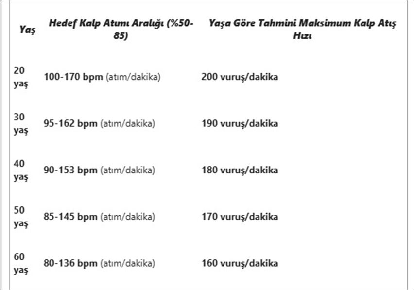 “Günümüzde akıllı saatler gibi teknolojiler sayesinde kişiler, kalp hızlarına uygun yürüyüş yapabiliyor. Bu cihazlar, hem kalp atım hızınızı ölçmesi hem de adımsayar olarak kullanılması açısından mükemmel birer egzersiz asistanı görevi görüyor. Amerikan Kalp Derneği’nin verilerine göre, yürüdüğünüz temponun yaşınıza göre kalp atış hızınızı belirli bir hedef aralıkta tutması gerekir. Eğer 40 yaşındaysanız; haftanın en az 5 günü, her defasında en az 30 dakika süren ve kalp atımınızı ortalama 130-140 vuruş/dakika aralığında tutan tempolu yürüyüş, sizin için ideal bir fiziksel aktivite olacaktır.”