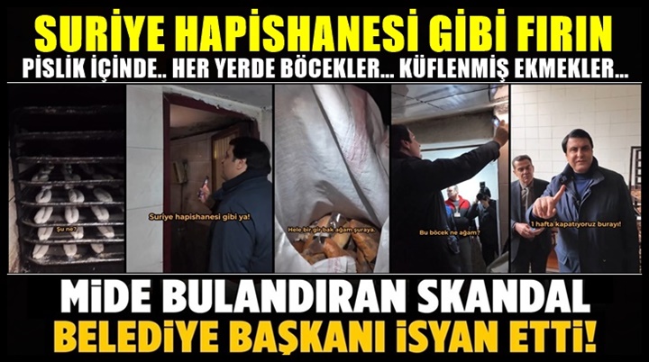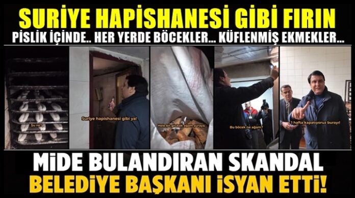 Gaziantep’te Şehitkamil Belediyesi tarafından bir fırında yapılan denetimlerde mide bulandıran görüntüler ortaya çıktı. Denetime bizzat katılan Şehitkamil Belediye Başkanı Umut Yılmaz, pislik içerisindeki fırında böcekleri ve küflenmiş ekmekleri görünce çileden çıktı. Yılmaz, düzenleme yapmak için 3 gün müsaade isteyen işletme sahibine “Burası Suriye hapishanesi gibi” diyerek tepki gösterdi.