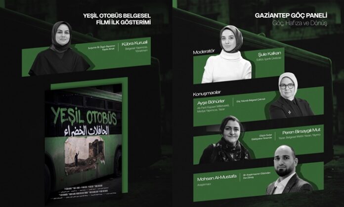 Gaziantep Büyükşehir Belediyesi ev sahipliğinde Yeşil Otobüs Belgesel Filmi İlk Gösterimi ve Göç, Hafıza ve Dönüş Paneli düzenleniyor.