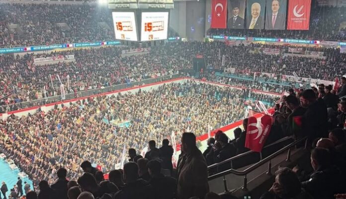 Ankara Arena Kapalı Spor Salonu’nda pazar günü gerçekleştirilen Yeniden Refah Partisi (YRP) 3. Olağan Büyük Kongresi, polis kayıtlarına göre 102 bin 730 kişinin katılımıyla tarihi bir kalabalığa sahne oldu.